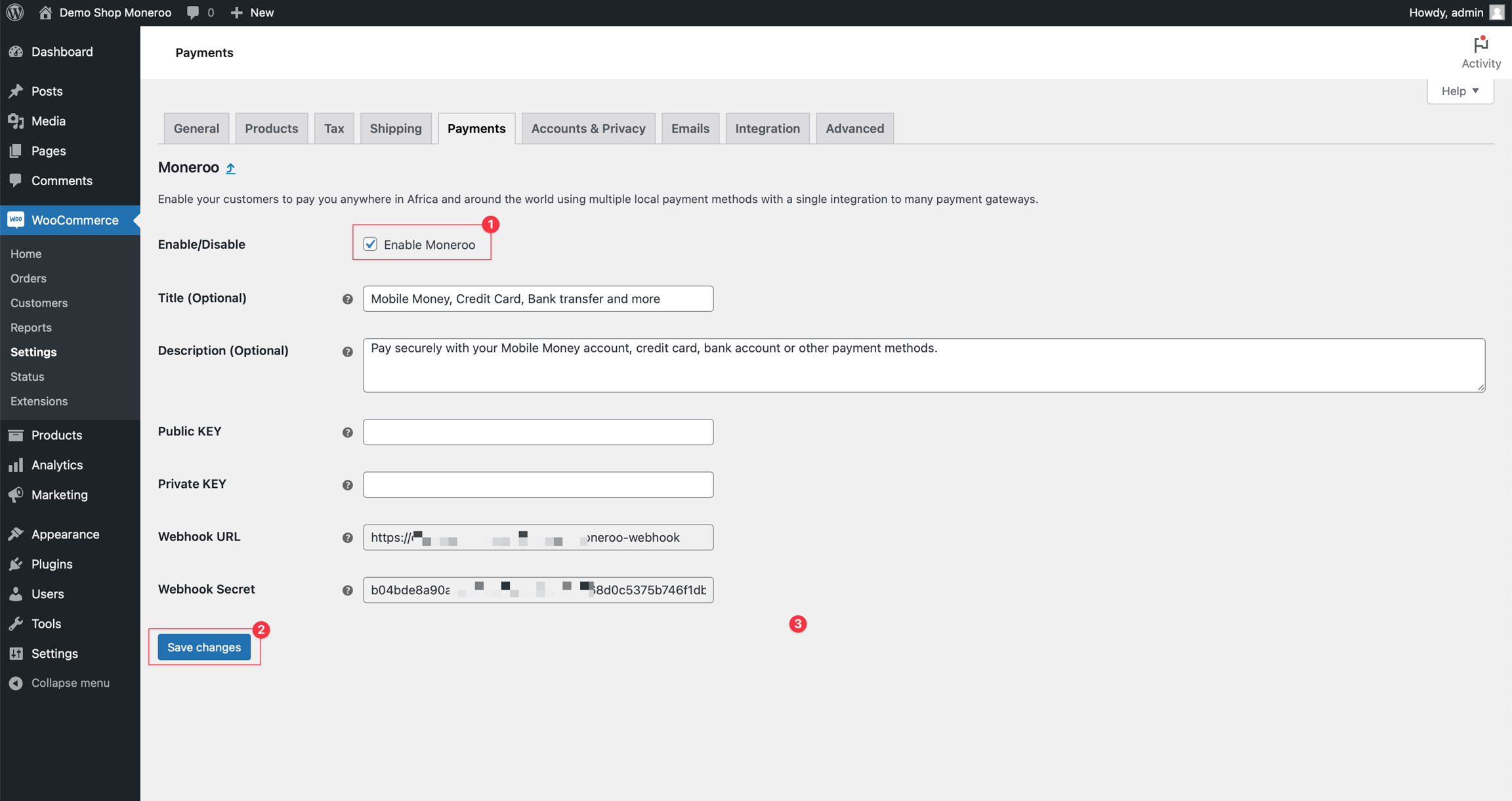 Moneroo plugin for WooCommerce has some other settings that you can configure to suit your needs.