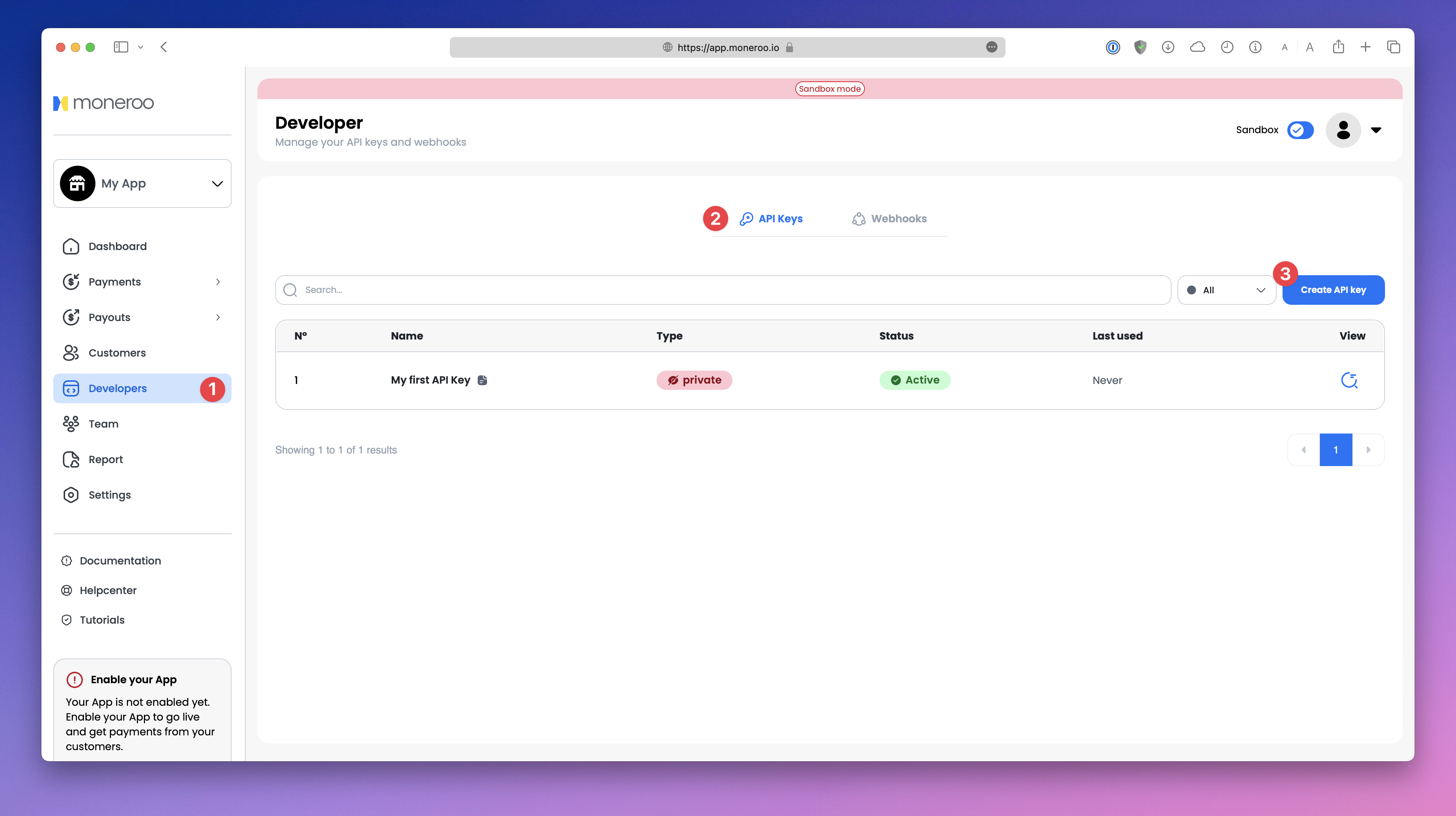 To create API keys, go to the **developer** section of the Moneroo dashboard.