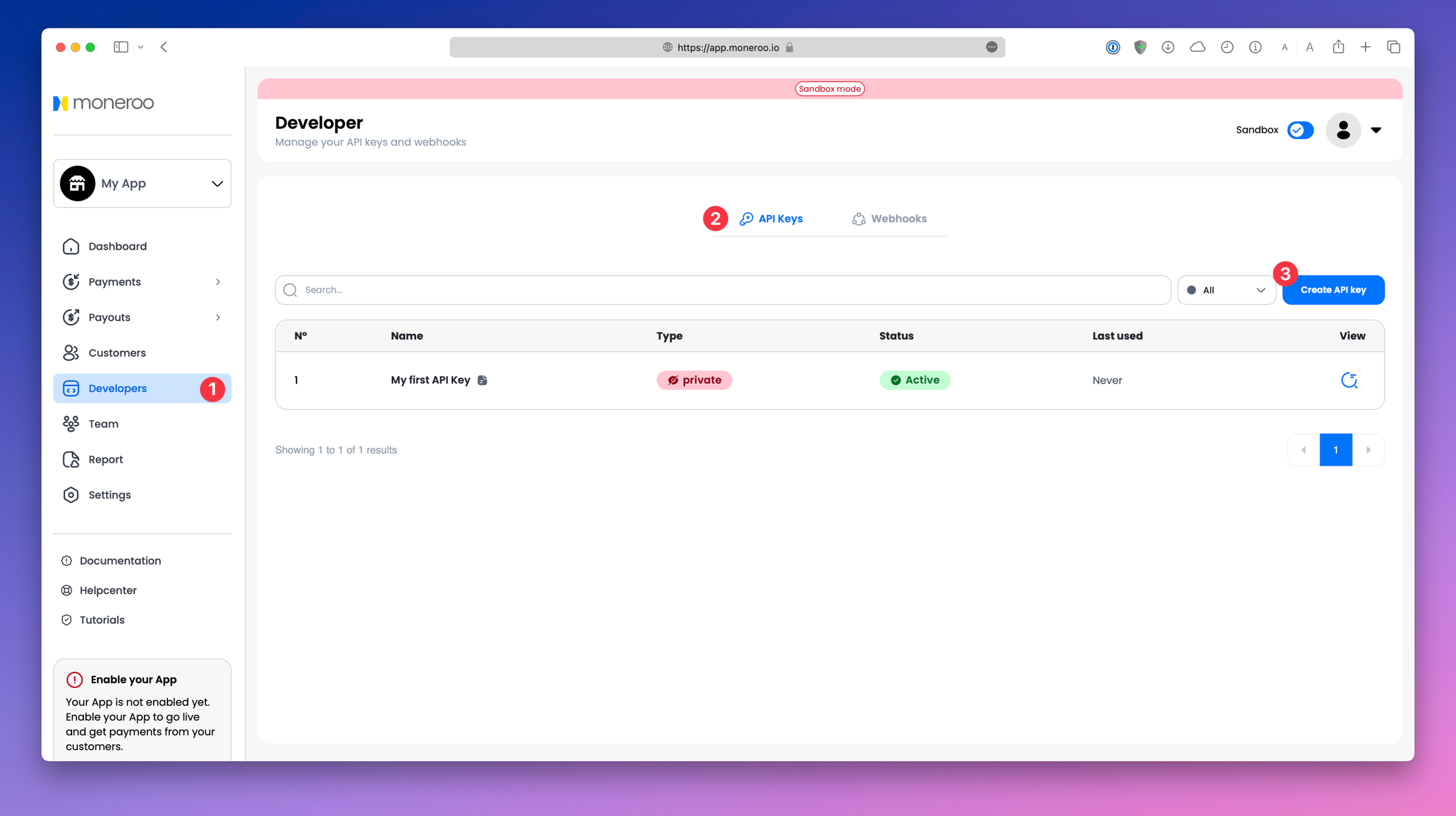 Moneroo.io Create API Keys