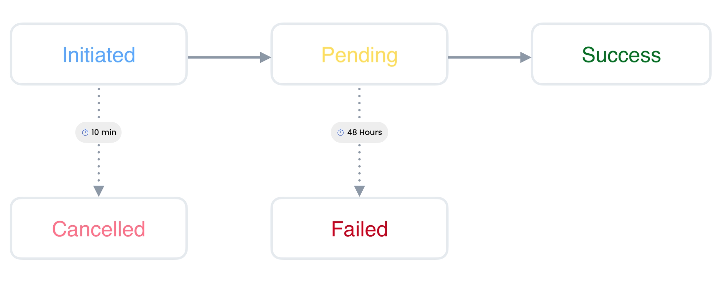 Each payment stage processed through our platform is marked with a specific transaction status. These statuses are categorized into two groups: transitional and final.